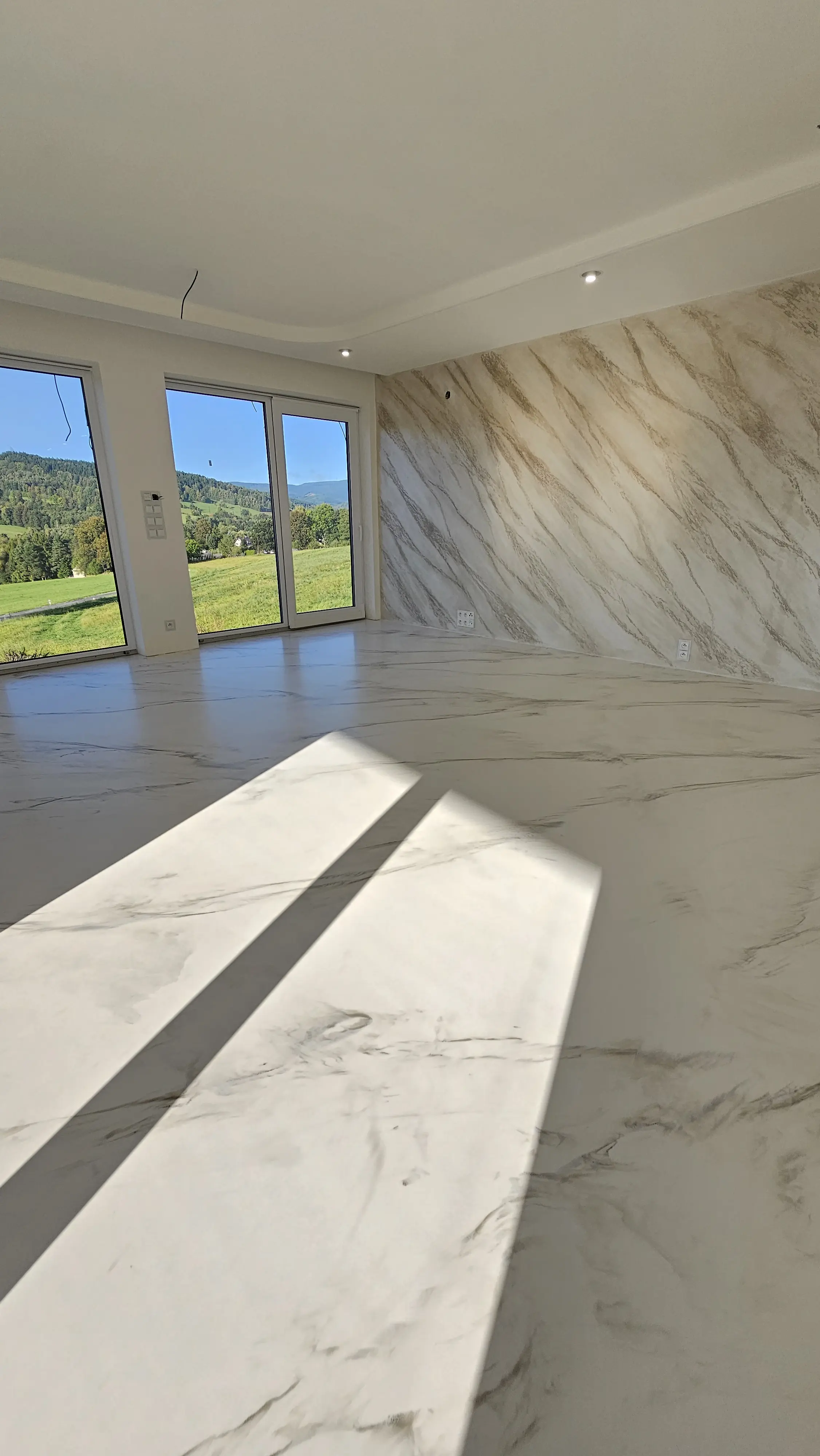 Smetanová podlaha s efektem mramoru